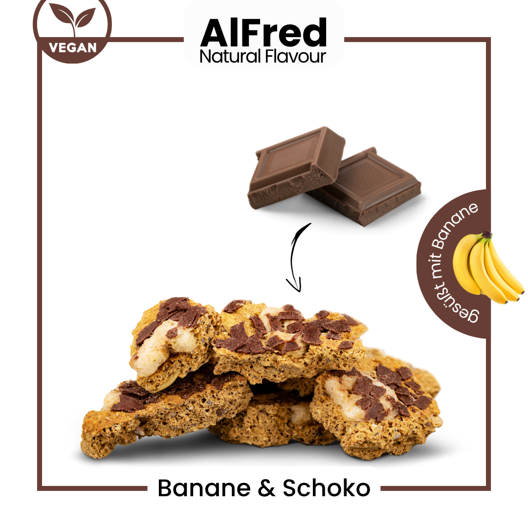Schoko Banane nicht nur auf dem Volksfest einfach immer ein MUSS! Auch hier meine Lieblingssorte! Super lecker, egal ob im Müsli oder so zum snacken! Ich hab meine eigene Technik für den AlFred und packe ihn mit meinem Essen in eine Brotdose, dadurch wird er etwas "weicher" und dann snack ich ihn am liebsten als "Nachspeise" zum Mittagsessen.